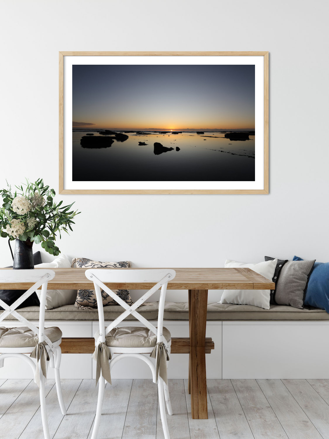 Printed on radiance satin premium photo paper using Epson large-format printers, ensuring your sunrise is vibrant and doesn’t fade over time. Available in raw oak, white or black frames.