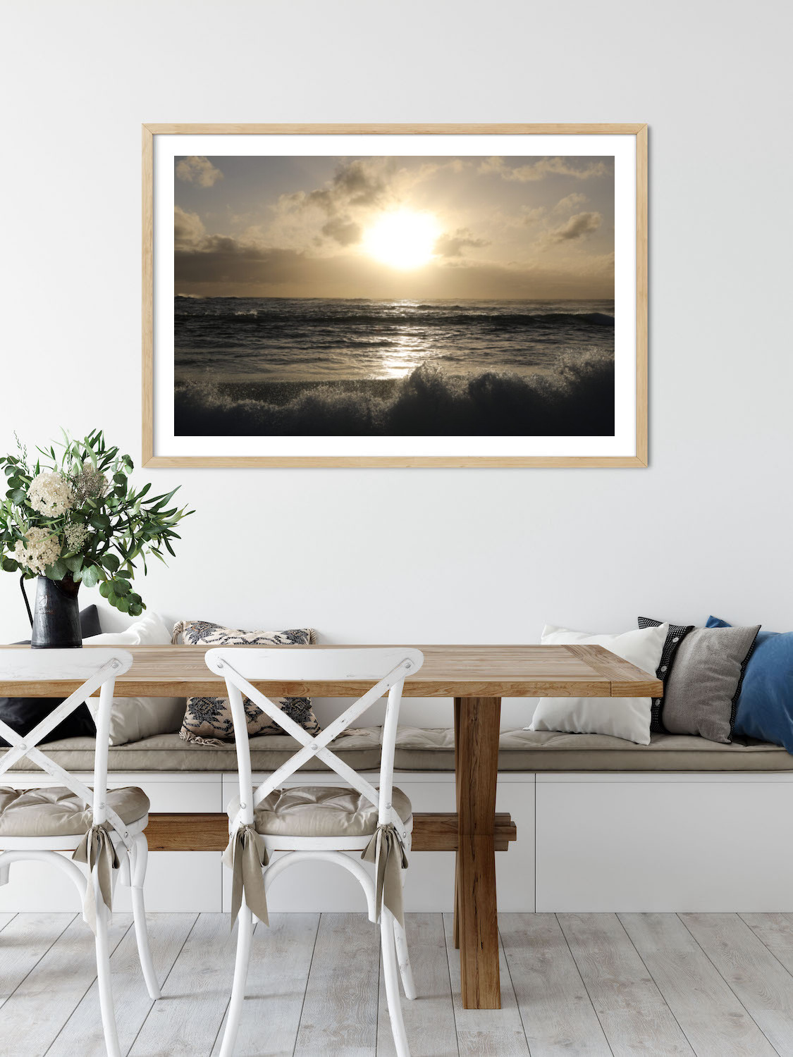 Printed on radiance satin premium photo paper using Epson large-format printers, ensuring your sunrise is vibrant and doesn’t fade over time. Available in raw oak, white or black frames.