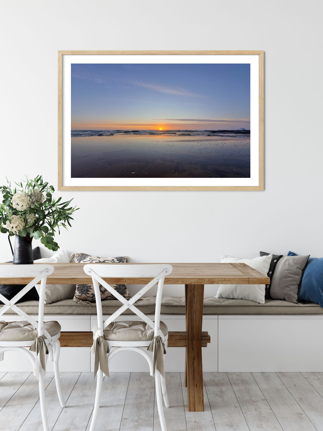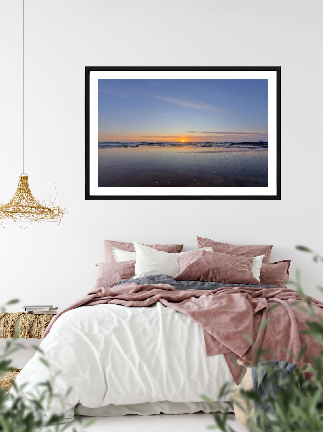 Printed on radiance satin premium photo paper using Epson large-format printers, ensuring your sunrise is vibrant and doesn’t fade over time. Available in raw oak, white or black frames.