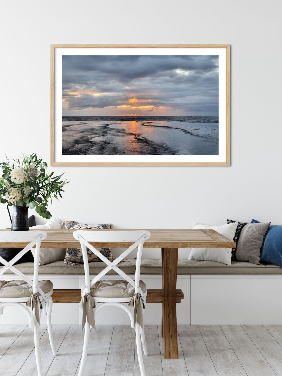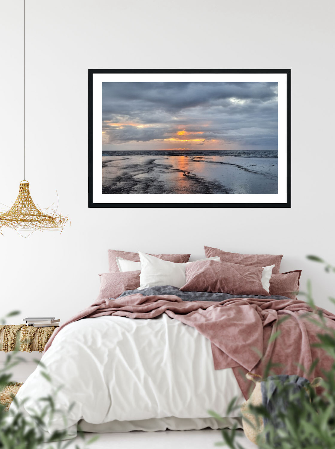 Printed on radiance satin premium photo paper using Epson large-format printers, ensuring your sunrise is vibrant and doesn’t fade over time. Available in raw oak, white or black frames.