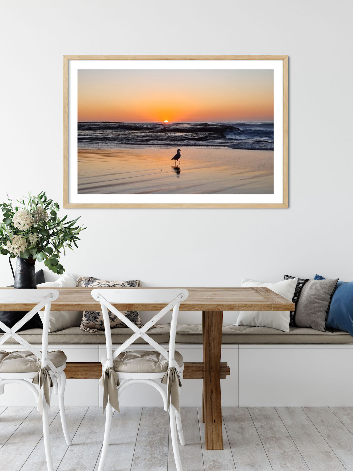 Printed on radiance satin premium photo paper using Epson large-format printers, ensuring your sunrise is vibrant and doesn’t fade over time. Available in raw oak, white or black frames.