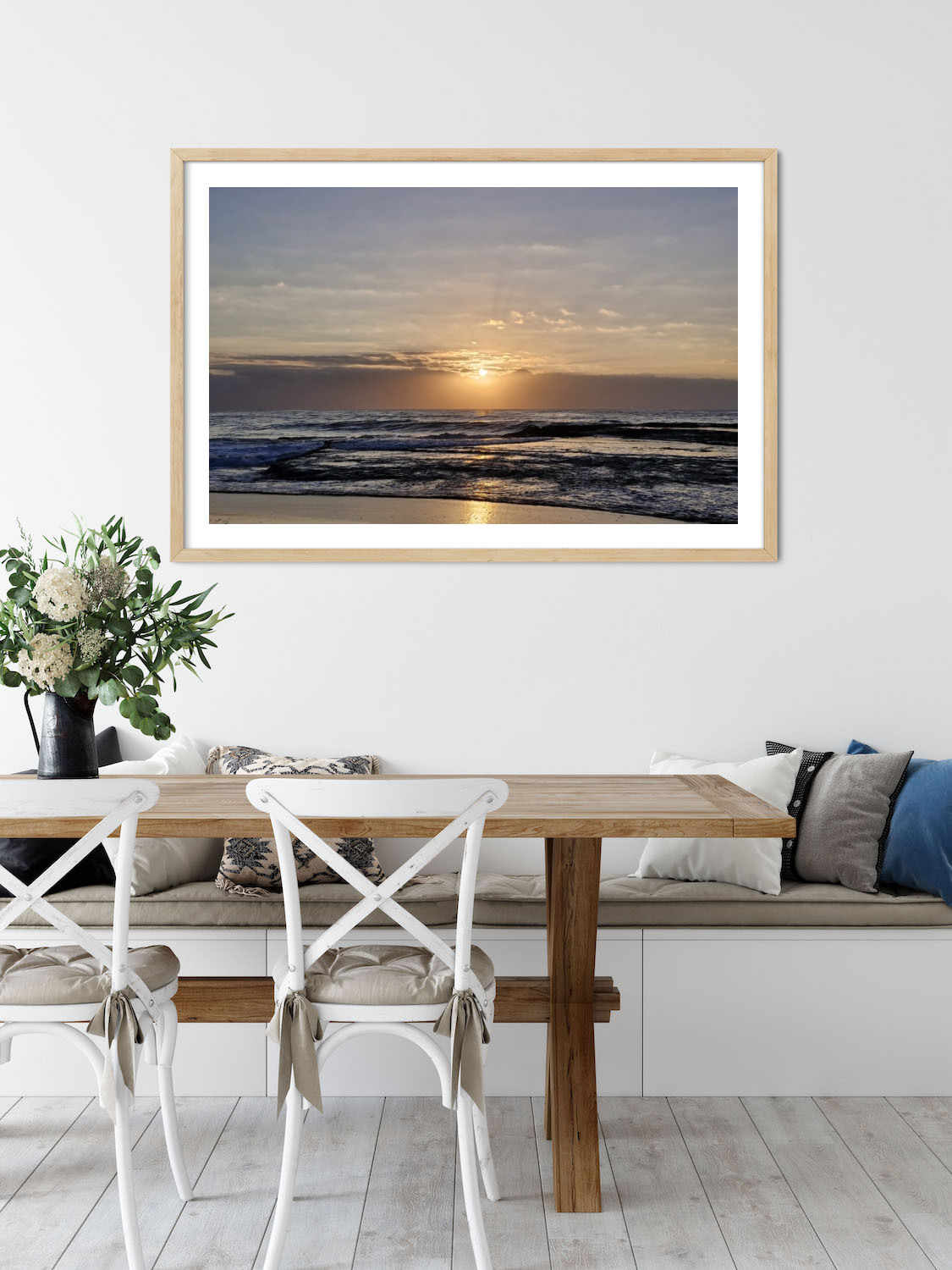Printed on radiance satin premium photo paper using Epson large-format printers, ensuring your sunrise is vibrant and doesn’t fade over time. Available in raw oak, white or black frames.