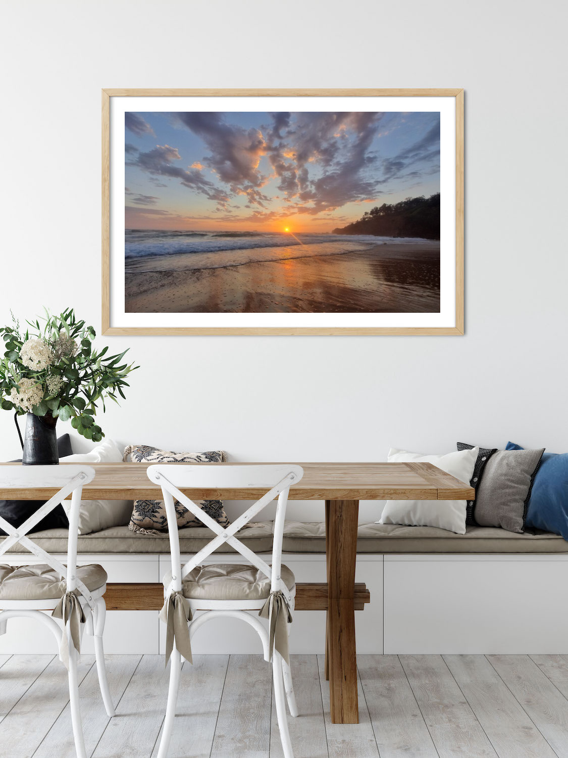 Printed on radiance satin premium photo paper using Epson large-format printers, ensuring your sunrise is vibrant and doesn’t fade over time. Available in raw oak, white or black frames.