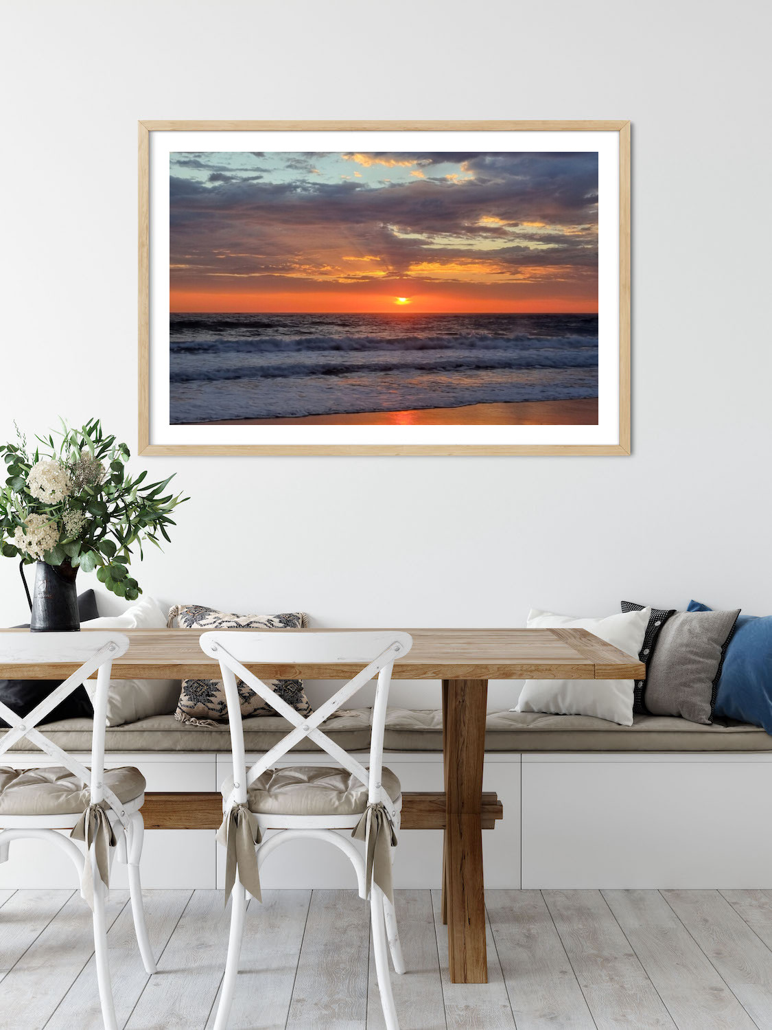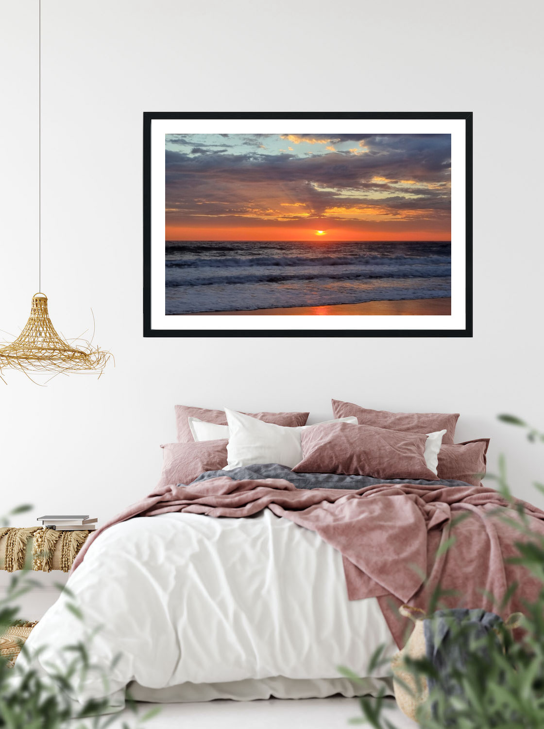 Printed on radiance satin premium photo paper using Epson large-format printers, ensuring your sunrise is vibrant and doesn’t fade over time. Available in raw oak, white or black frames.