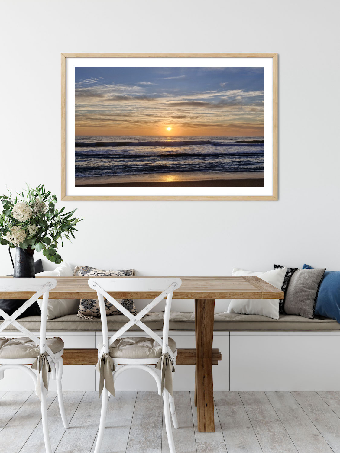 Printed on radiance satin premium photo paper using Epson large-format printers, ensuring your sunrise is vibrant and doesn’t fade over time. Available in raw oak, white or black frames.
