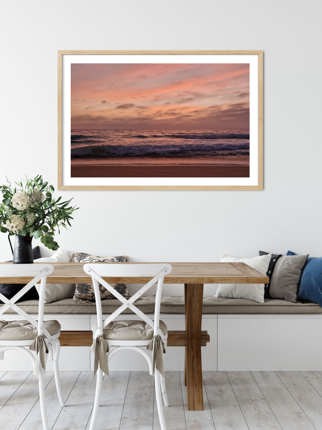 Printed on radiance satin premium photo paper using Epson large-format printers, ensuring your sunrise is vibrant and doesn’t fade over time. Available in raw oak, white or black frames.