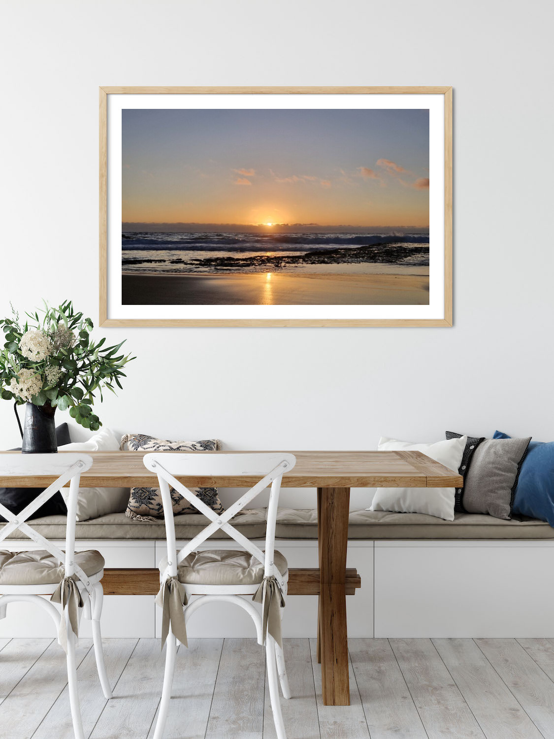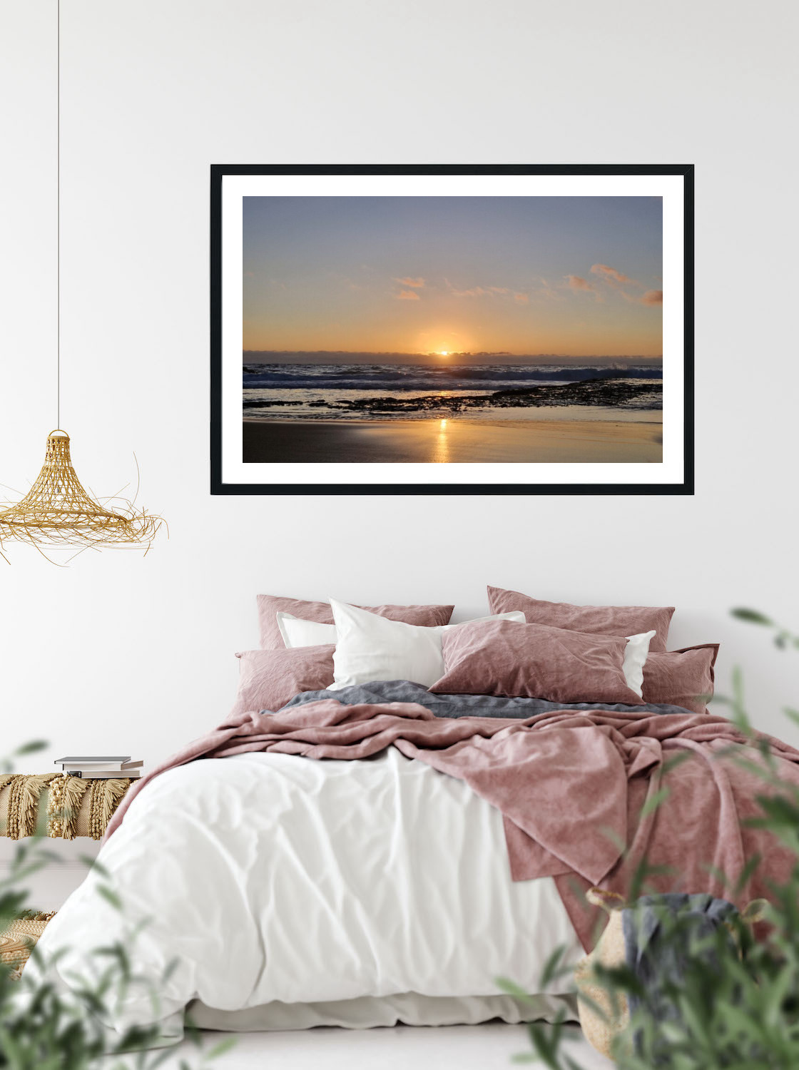 Printed on radiance satin premium photo paper using Epson large-format printers, ensuring your sunrise is vibrant and doesn’t fade over time. Available in raw oak, white or black frames.