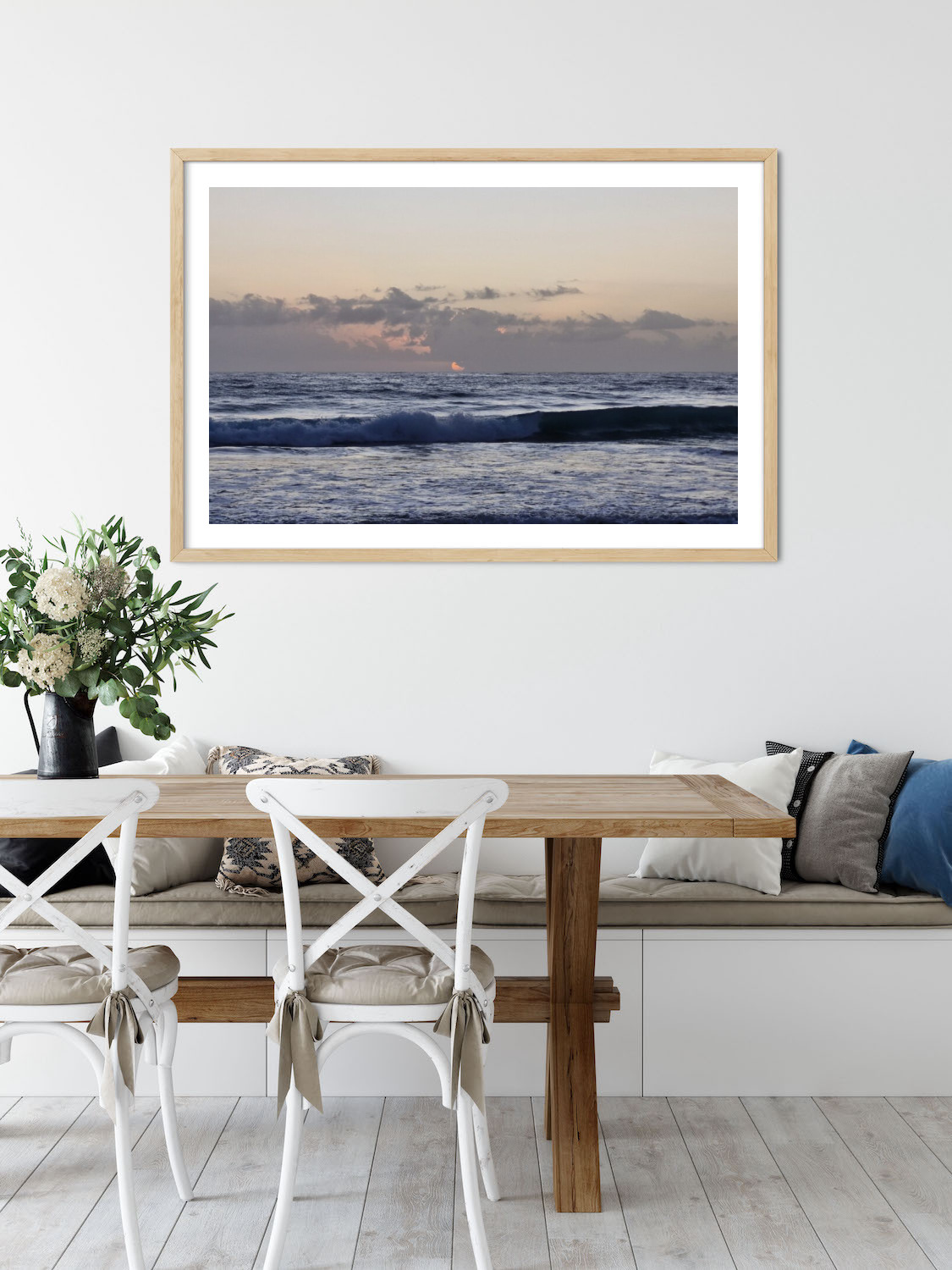 Printed on radiance satin premium photo paper using Epson large-format printers, ensuring your sunrise is vibrant and doesn’t fade over time. Available in raw oak, white or black frames.